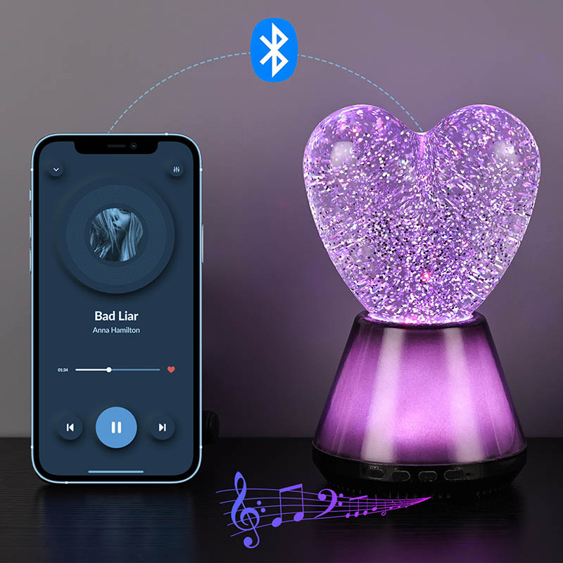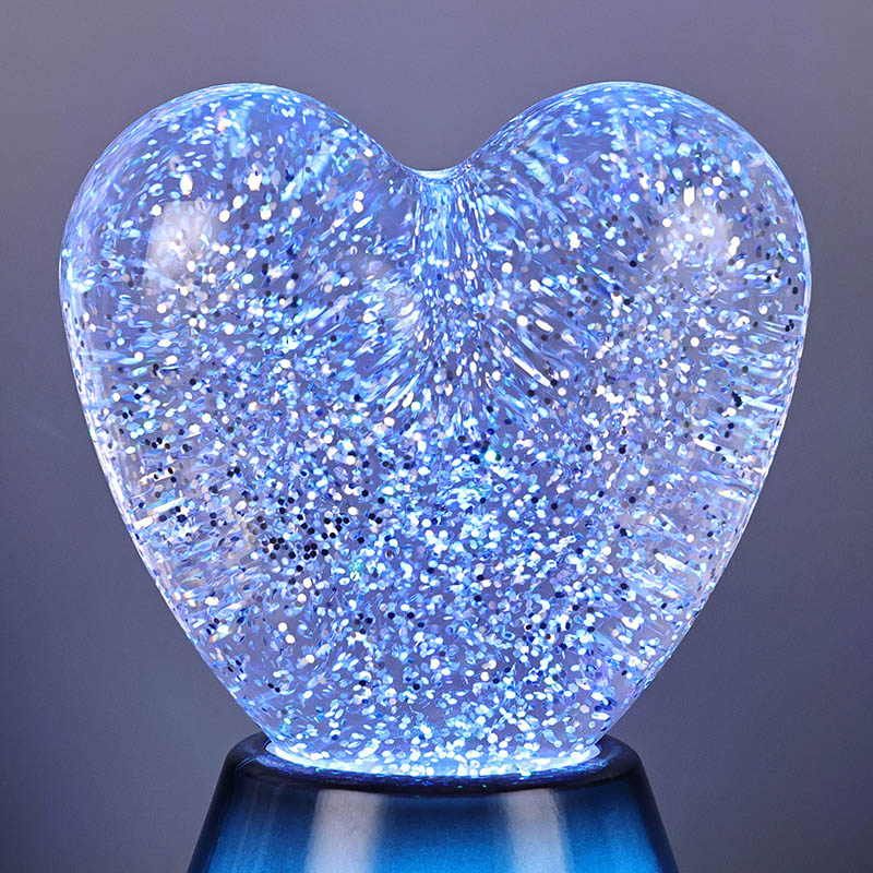 Το εσωτερικό του νυχτερινού φωτός λάμψης καρδιάς led με έλεγχο Bluetooth είναι γεμάτο με ένα μυστηριώδες υγρό, μέσα στο οποίο επιπλέουν αμέτρητες αστραφτερές πούλιες. Όταν η λάμπα είναι αναμμένη, το υγρό θα ρέει αργά μέσα στη γυάλινη μπάλα σε σχήμα καρδιάς, δημιουργώντας ένα ονειρικό αποτέλεσμα. Αυτές οι πούλιες φαίνονται σαν διάσπαρτα αστέρια, που επιπλέουν απαλά στο υγρό, δίνοντας στους ανθρώπους την αίσθηση ότι βρίσκονται στον έναστρο ουρανό. Είτε είναι μέρα είτε νύχτα, με τη σκιά καρδιάς μπορεί να φέρει έκπληξη και χαρά στα παιδιά, επιτρέποντάς τους να απελευθερώσουν τη φαντασία τους στον ονειρικό φωτισμό.