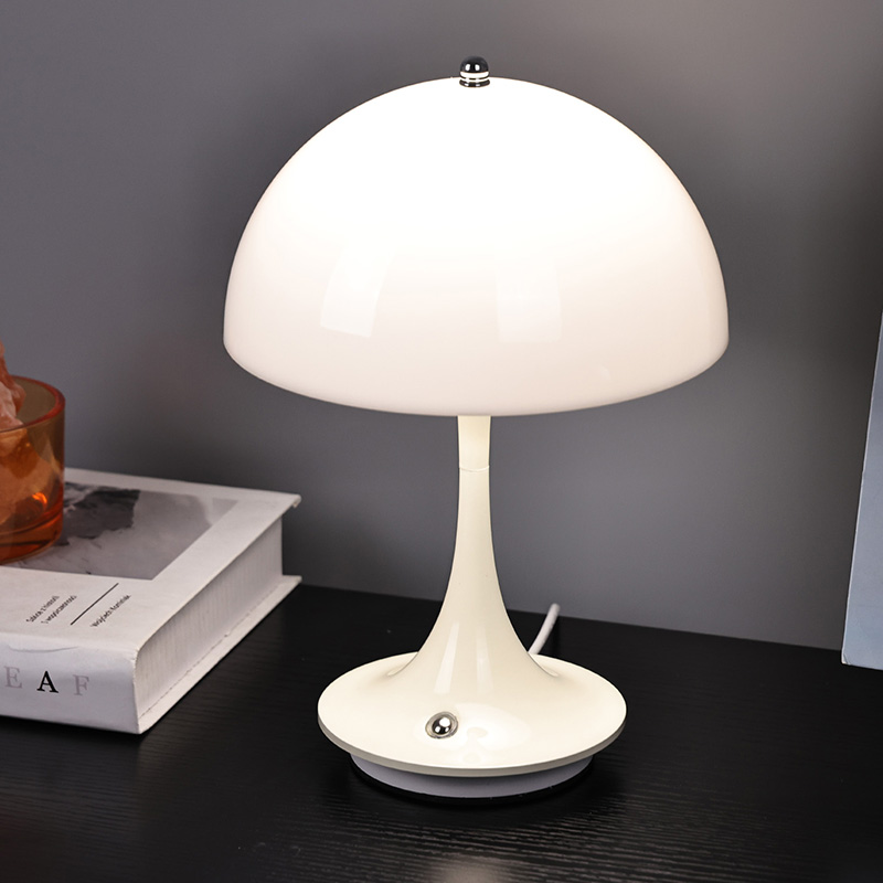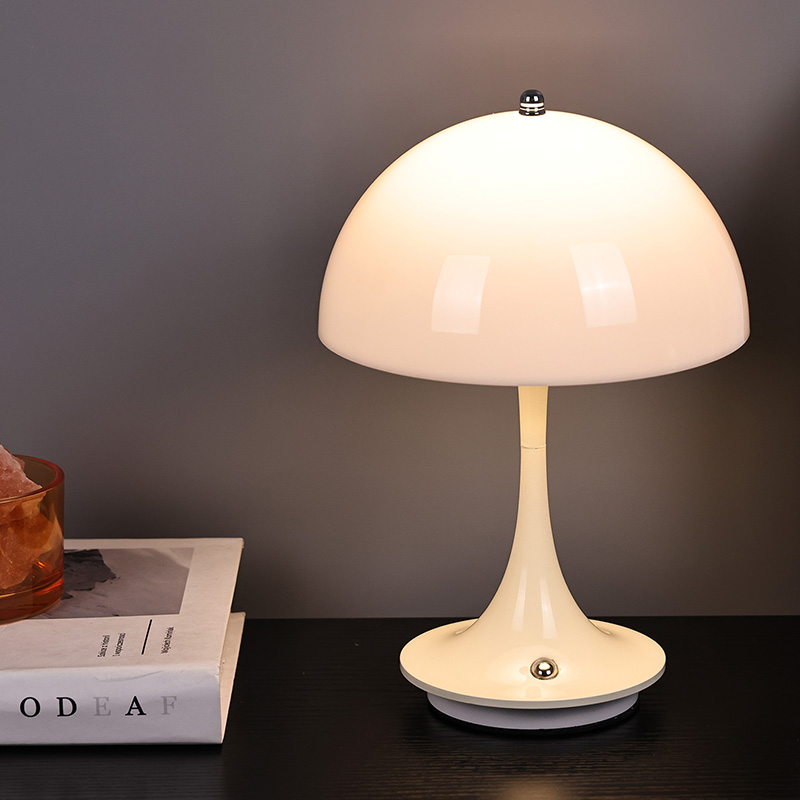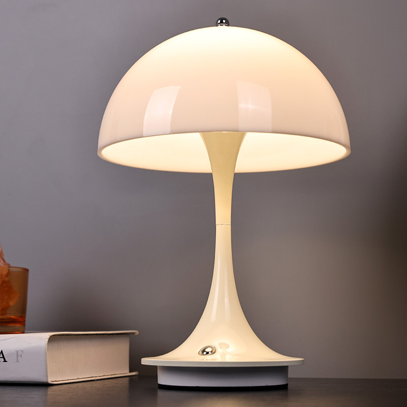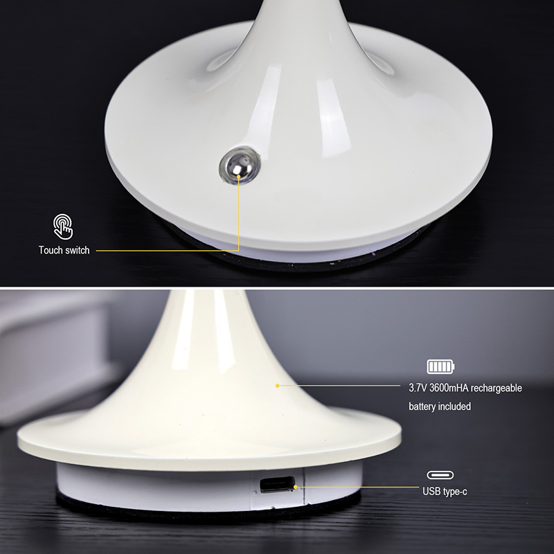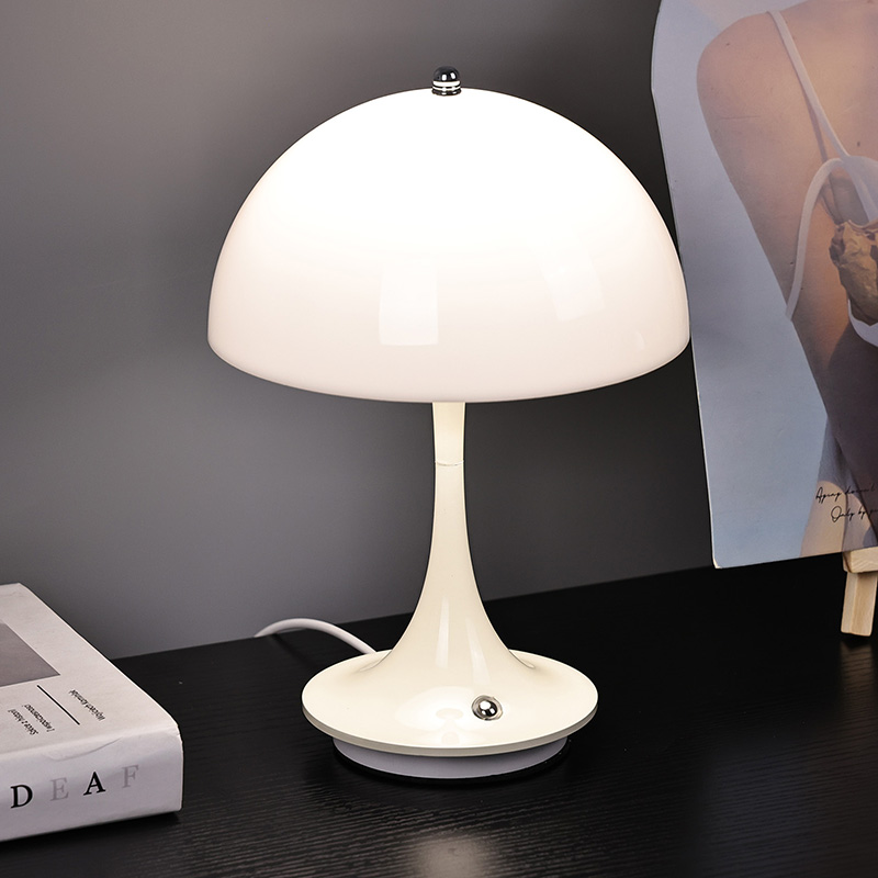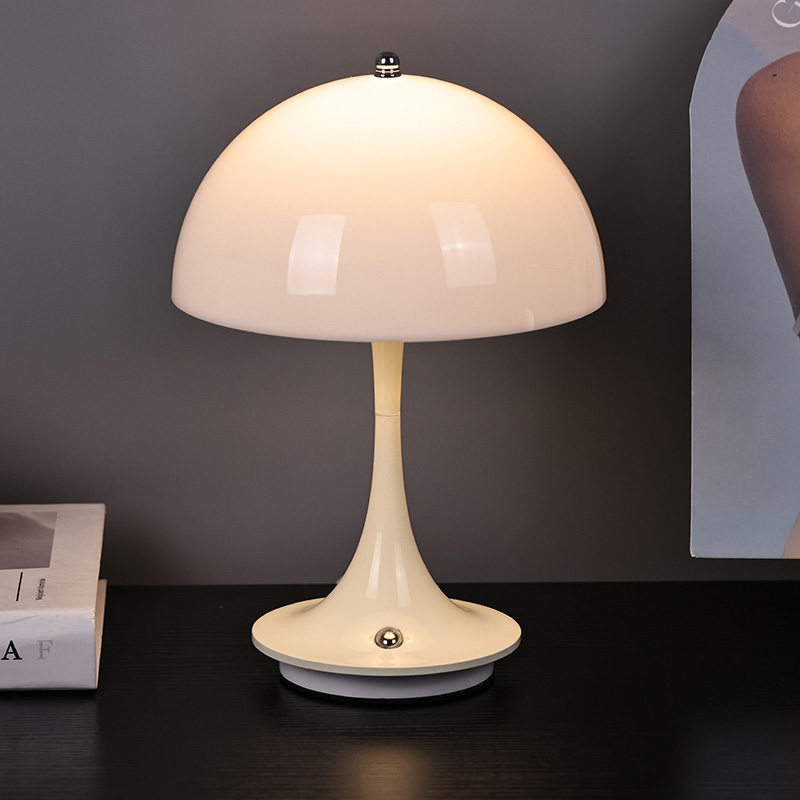 Οι οικιακές λάμπες Cute Led With Mushroom Shade έχουν μεταλλική βάση και μεταλλικό φωτιστικό, μαζί με πλαστικό αμπαζούρ. Η επιφάνεια του αμπαζούρ είναι κερωμένη και λεία, με πολύ καλή πινελιά, που θυμίζει μανιτάρι
