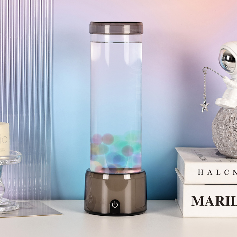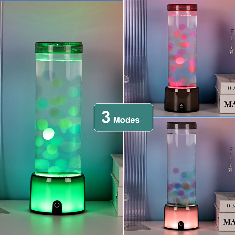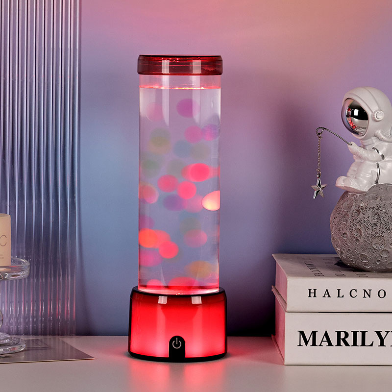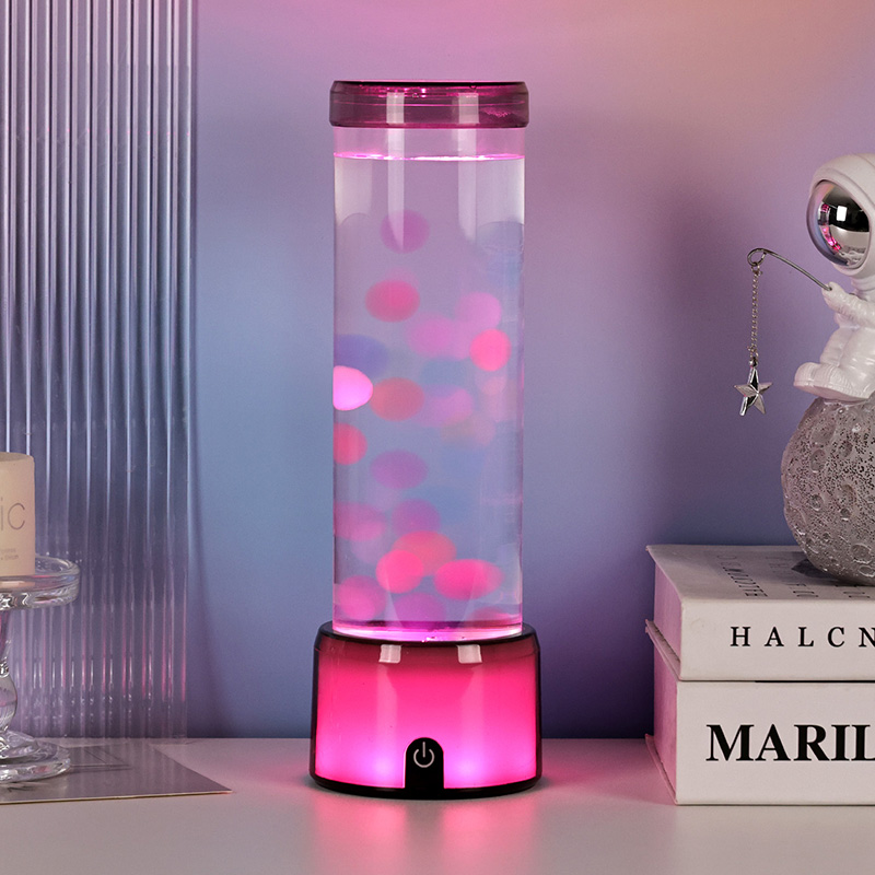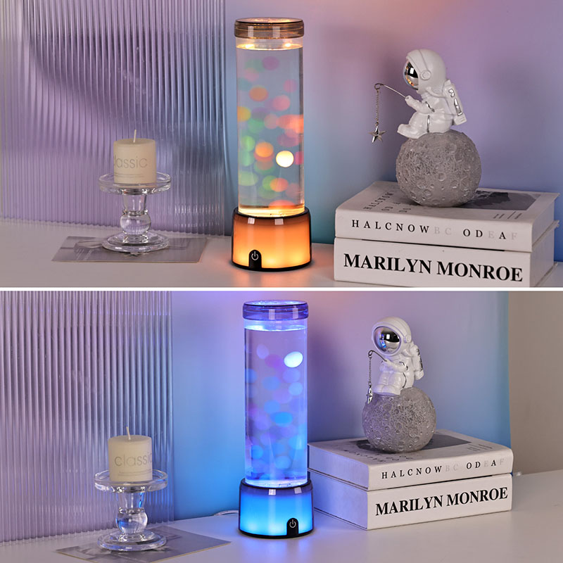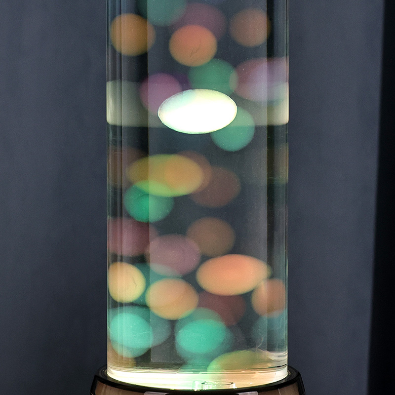 Το ψηλό, κομψό σχήμα κυλίνδρου του λαμπτήρα του δίνει μια μοντέρνα, μινιμαλιστική εμφάνιση που συμπληρώνει διάφορα στυλ εσωτερικού χώρου. Το διαφανές σώμα του επιτρέπει την πλήρη ορατότητα των εσωτερικών στοιχείων, συμπεριλαμβανομένης της αιωρούμενης μέδουσας και των αστραφτερών αντανακλάσεων φωτός. Το υγρό στο εσωτερικό είναι ειδικά διαμορφωμένο για να προσομοιώνει τη ροή του νερού, ενισχύοντας τον ρεαλισμό της αιωρούμενης κίνησης. Καθώς τα LED αλλάζουν χρώματα, οι μέδουσες φαίνεται να σφύζουν από ζωή, προσθέτοντας βάθος και κίνηση στη σκηνή.