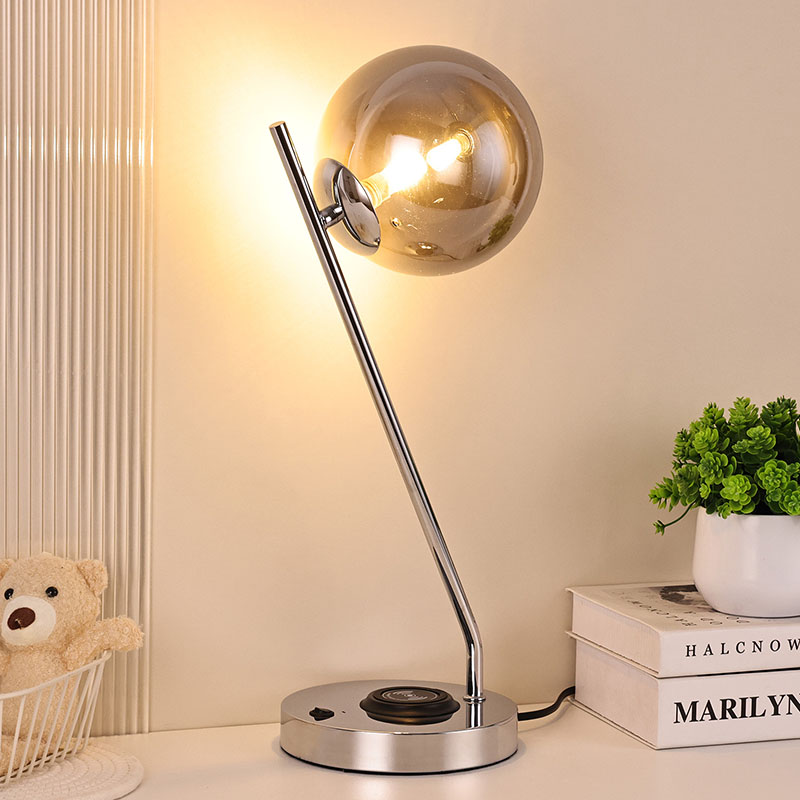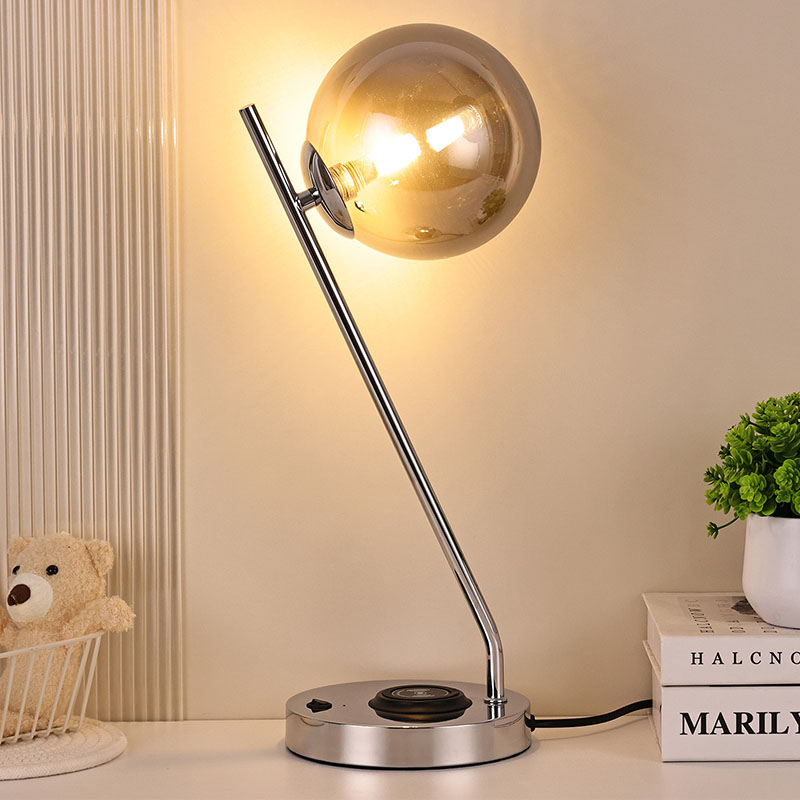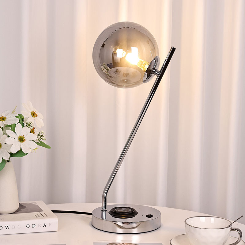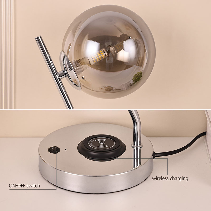 με λειτουργία ασύρματης φόρτισης 10W, διακόπτης ON/OFF στη βάσηΣκούρο γυαλί σφαιρικό επιτραπέζιο φωτιστικό με ασύρματο φορτιστή που ενσωματώνει γυάλινο κάλυμμα, φωτισμό LED ζεστού χρώματος και μεταλλική βάση ασύρματης φόρτισης κινητού τηλεφώνου, έχει σχεδιαστεί για αυτό το σκοπό. Συνδυάζει τέλεια τη σύγχρονη τεχνολογία με τη ζεστή σχεδίαση, προσφέροντάς σας πρωτοφανή εμπειρία άνεσης και άνεσης