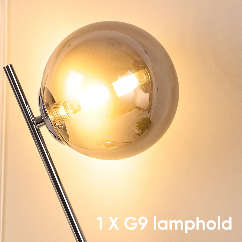 Η επιτραπέζια λάμπα είναι κατασκευασμένη από γυάλινη μπάλα πάνω σε λυχνίες led