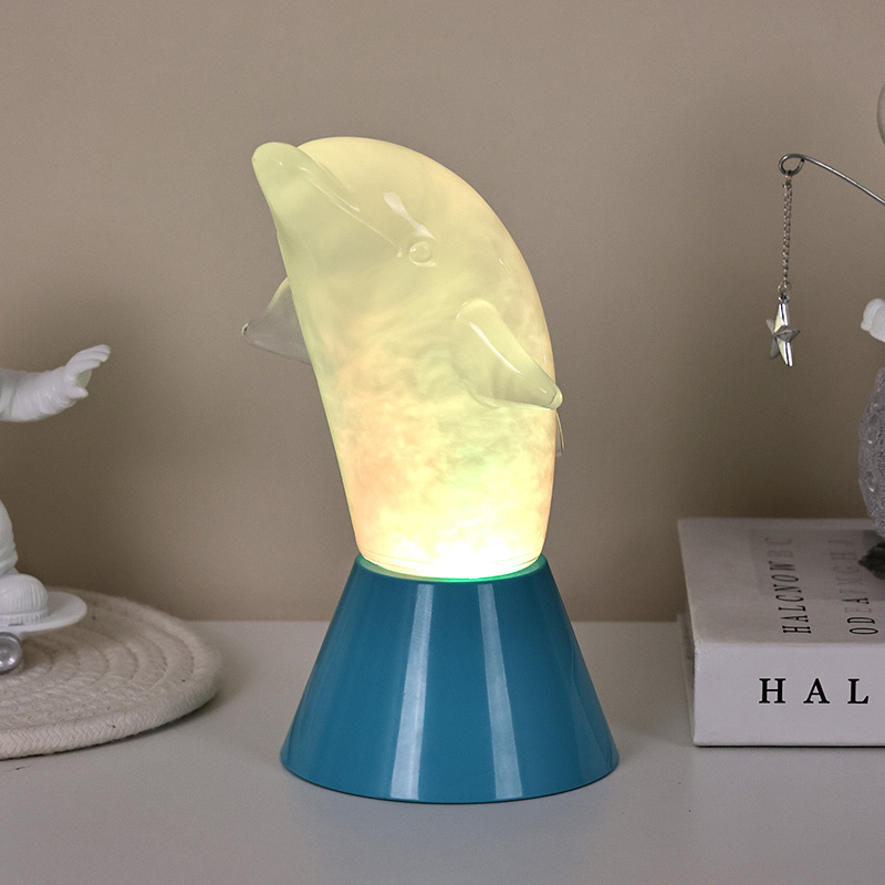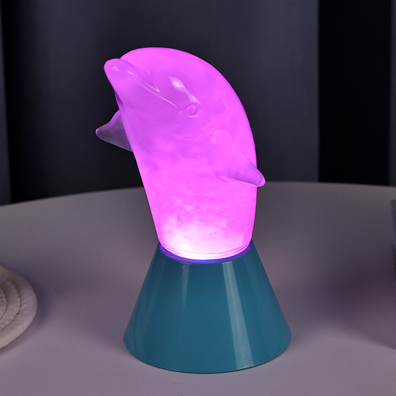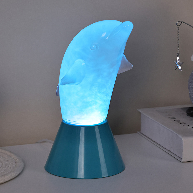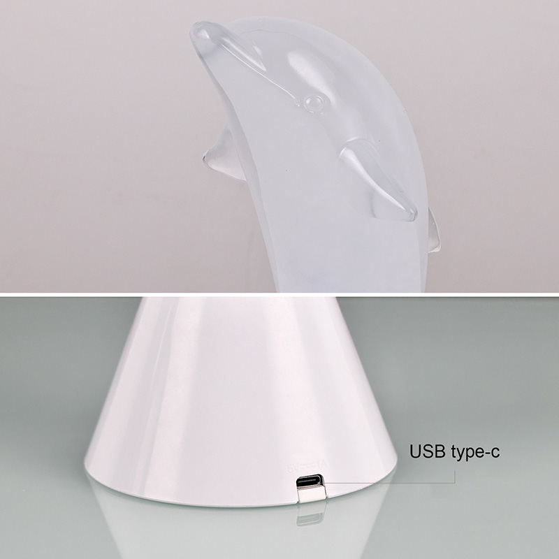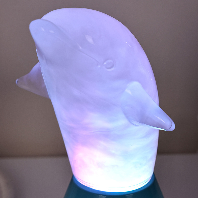 Το Dolphin Kid RGB Nigh Light έχει σχεδιαστεί σε σχήμα χαριτωμένου δελφινιού, με ομαλές γραμμές και εξαιρετικές λεπτομέρειες που αποκαθιστούν τέλεια την ευκίνητη στάση των δελφινιών. Μέσα στο διαφανές κέλυφος του δελφινιού, το ομιχλώδες υγρό που ρέει μοιάζει με κύματα στον ωκεανό, που ταλαντεύονται απαλά, δημιουργώντας μια γαλήνια και μυστηριώδη ατμόσφαιρα. Κάθε φορά που κοιτάζεις αυτή τη λάμπα, νιώθεις σαν να βρίσκεσαι στα βάθη του ωκεανού, βιώνοντας την απέραντη γοητεία της φύσης