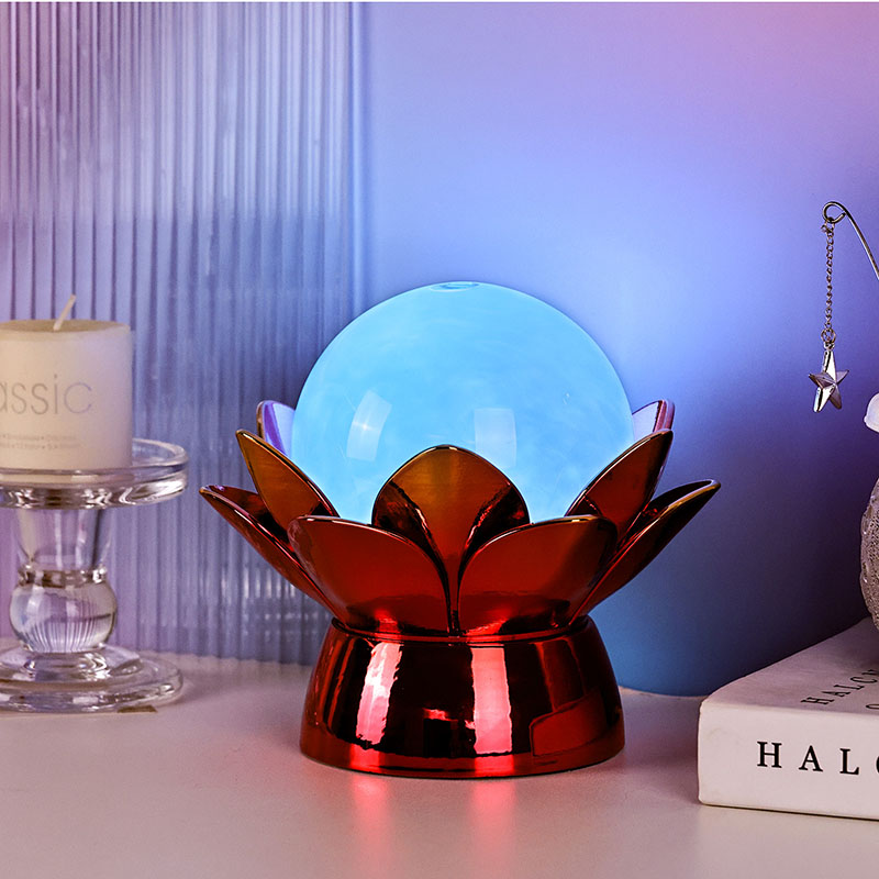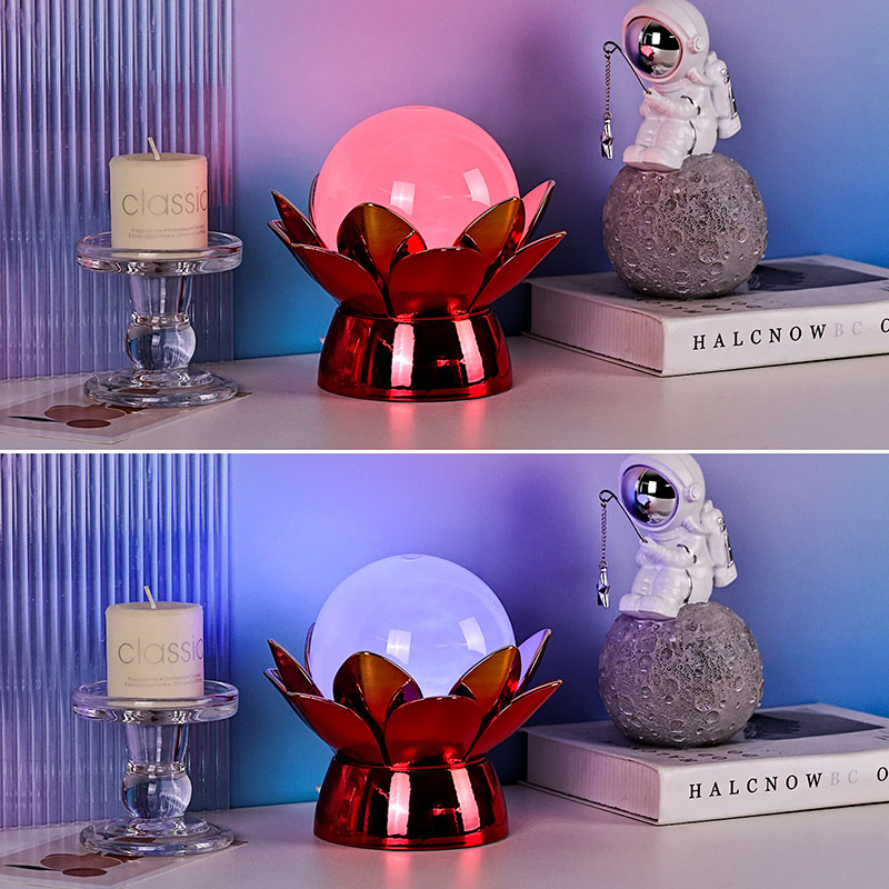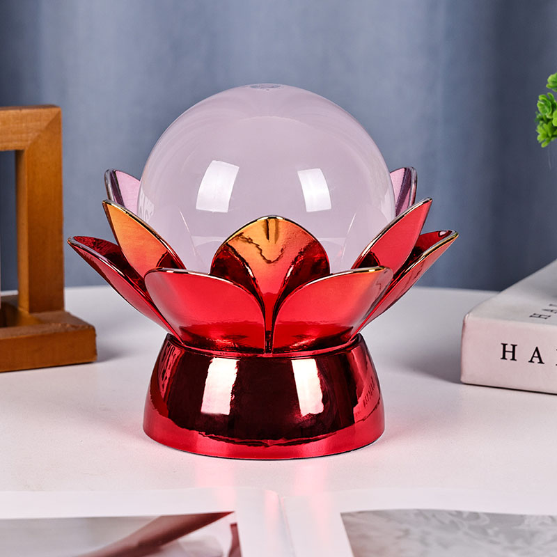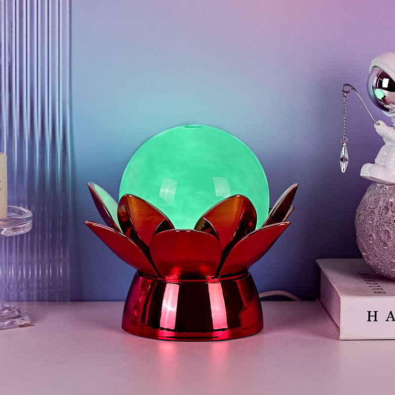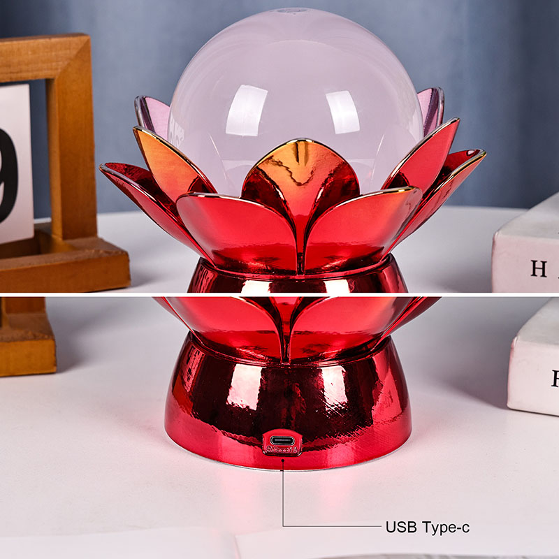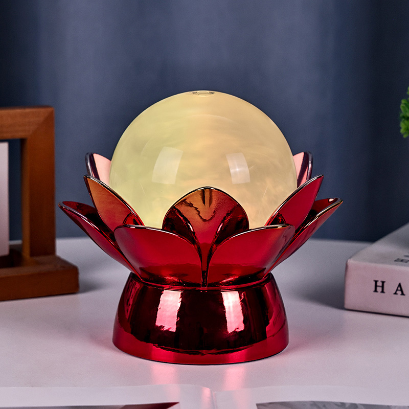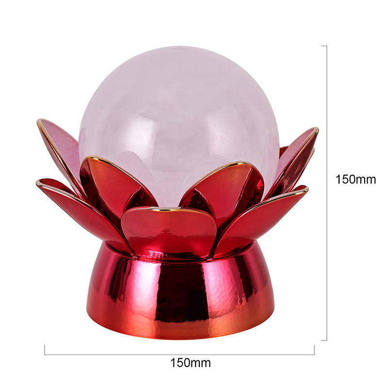 Κατασκευασμένη από υλικά υψηλής ποιότητας, η βάση είναι κατασκευασμένη από γυαλισμένο μέταλλο με εντυπωσιακό κόκκινο-χρυσό φινίρισμα που αντανακλά όμορφα το φως, προσθέτοντας βάθος και πλούτο στην εμφάνισή της. Το σχέδιο του λωτού όχι μόνο χρησιμεύει ως αισθητικό σημείο εστίασης, αλλά φέρει επίσης συμβολικό νόημα που έχει τις ρίζες του στις ανατολικές παραδόσεις - αντιπροσωπεύοντας τη φώτιση, την ανθεκτικότητα και την αρμονία. Η ανακλαστική επιφάνεια ενισχύει την οπτική επίδραση, κάνοντας τη λάμπα να λάμπει ακόμη και σε περιβάλλοντα χαμηλού φωτισμού.