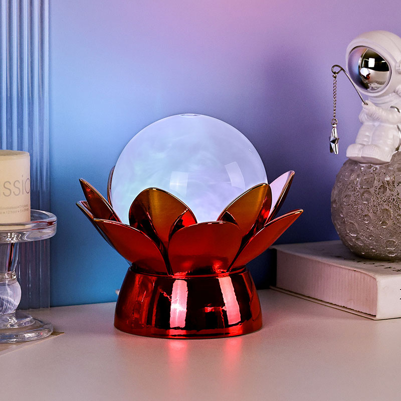 Το μαγευτικό Lotus Cloud Globe Night Light – μια μαγευτική συγχώνευση σχεδιασμού εμπνευσμένου από τη φύση, χαλαρωτικής ατμόσφαιρας και σύγχρονης τεχνολογίας. Αυτό το κομψό διακοσμητικό φωτιστικό διαθέτει μια ημιδιαφανή γυάλινη σφαίρα γεμάτη με ένα ειδικό υγρό που προσομοιώνει τα σύννεφα που παρασύρονται, δημιουργώντας ένα ήρεμο, αιθέριο αποτέλεσμα καθώς στροβιλίζεται απαλά και ρέει. Εμπνευσμένο από το ιερό άνθος του λωτού, αυτό το νυχτερινό φως στηρίζεται σε μια όμορφα κατασκευασμένη μεταλλική βάση σε σχήμα ανθισμένα πέταλα λωτού, που συμβολίζει την αγνότητα, την ειρήνη και την πνευματική αφύπνιση.