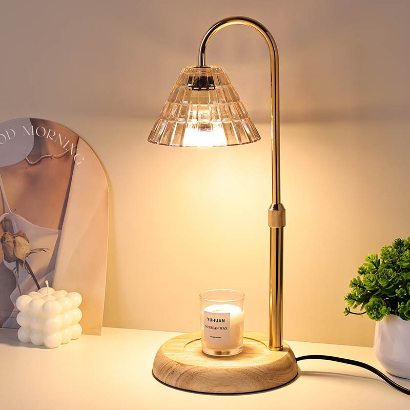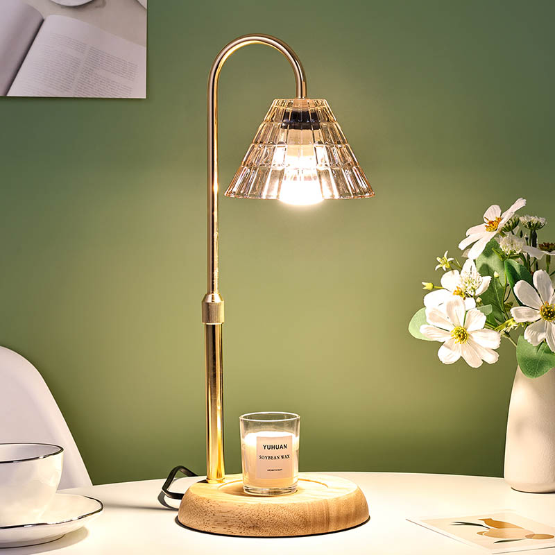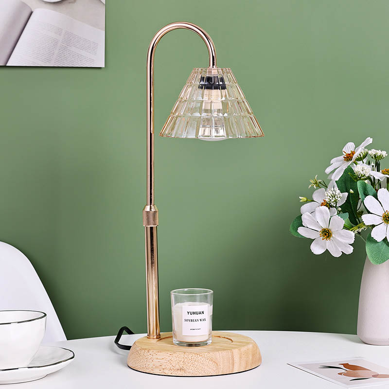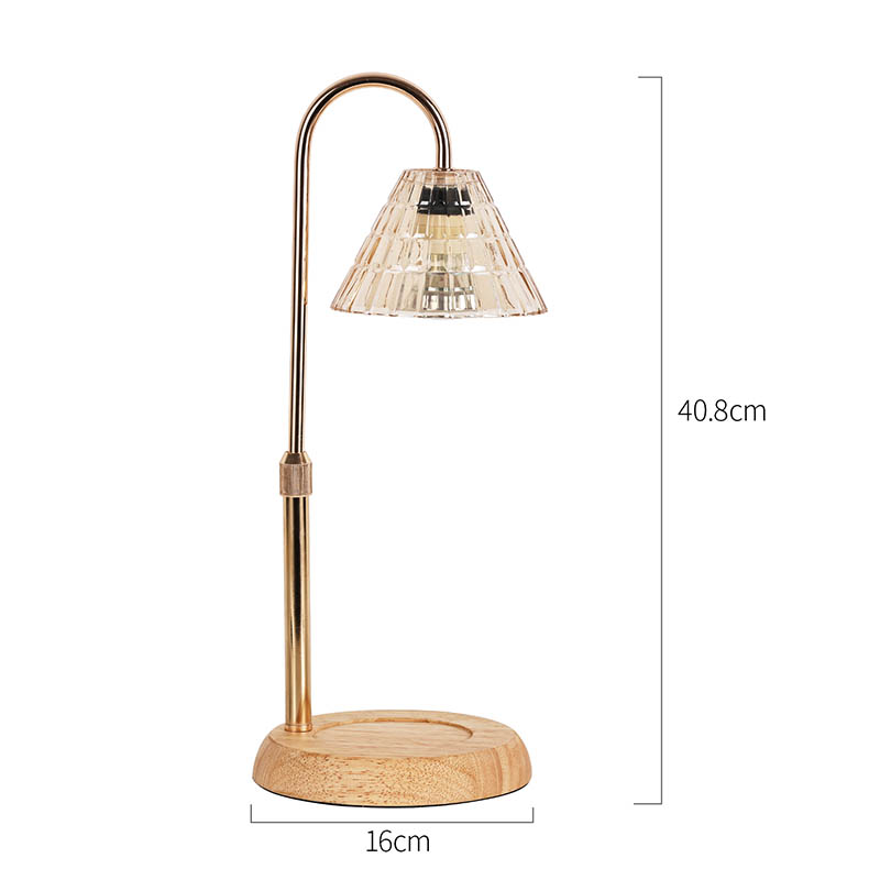 Το επιτραπέζιο φωτιστικό γυάλινης σκιάς με ρύθμιση ύψους είναι ένα παραδοσιακό στυλ σχεδιασμού, που αποτελείται από έναν παραδοσιακό λαμπτήρα με ξύλινη βάση και ένα χρυσό μεταλλικό φωτιστικό.