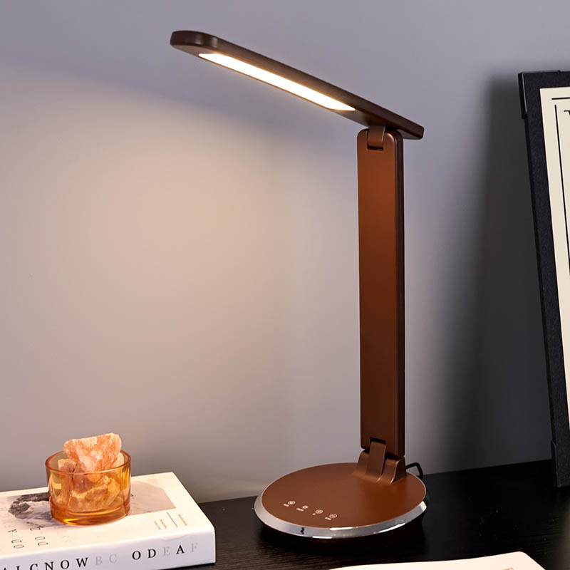 Επανασταλάστε την εμπειρία φωτισμού σας με τη σύγχρονη λαμπτήρα LED που είναι ευαίσθητη στην αφής με φορτιστή θύρας USB: 3000K, 4000K, 5000K ρυθμιζόμενες θερμοκρασίες χρώματος και ένταση: φωτίζουν τη ζωή σας με στυλ και πολυπλοκότητα σε μια εποχή όπου ο σχεδιασμός και η λειτουργικότητα συνυπάρχουν αρμονικά υποβάλλονται σε μετασχηματισμό. Από μια απλή πηγή φωτισμού σε ένα κομψό κομμάτι προφοράς που συμπληρώνει το χώρο εργασίας σας, ο σύγχρονος λαμπτήρας γραφείου έχει προχωρήσει πολύ. Σήμερα, σας παρουσιάζουμε ένα αριστούργημα της μηχανικής φωτισμού - μια λάμπα γραφείου που συνδυάζει κομψότητα, προηγμένη τεχνολογία και απαράμιλλη εμπειρία χρήστη. Με ευαίσθητα σε επαφή ελέγχους, ρυθμιζόμενες θερμοκρασίες χρώματος που κυμαίνονται από 3000k έως 5000k και προσαρμόσιμη ένταση φωτός, αυτή η σύγχρονη λάμπα γραφείου έχει σχεδιαστεί για να αυξάνει την καθημερινή σας ρουτίνα. ένας. Κατασκευασμένο από καφέ πλαστικό υψηλής ποιότητας, παρουσιάζει μια κομψή και σύγχρονη αισθητική που αναμειγνύεται άψογα με οποιαδήποτε διακόσμηση. Ο καμπυλωτός βραχίονας λάμπας εκτείνεται χαριτωμένα, παρέχοντας μια αίσθηση ρευστότητας και κίνησης. Ο ίδιος ο βραχίονας είναι αρκετά ανθεκτικός για να υποστηρίξει τις λωρίδες φωτός LED χωρίς καμία ταλάντωση, εξασφαλίζοντας ένα σταθερό και εστιασμένο φωτισμό.