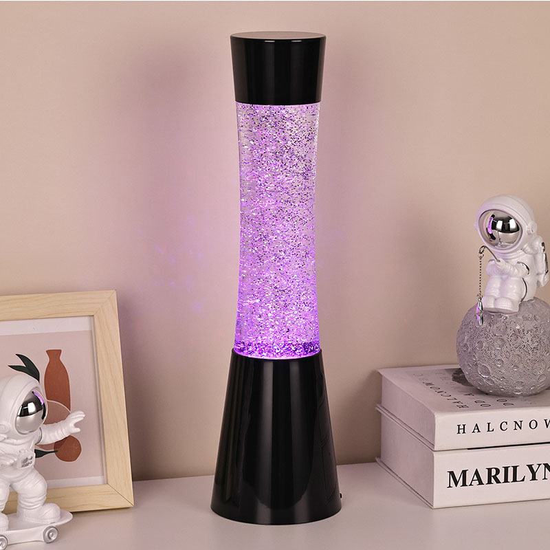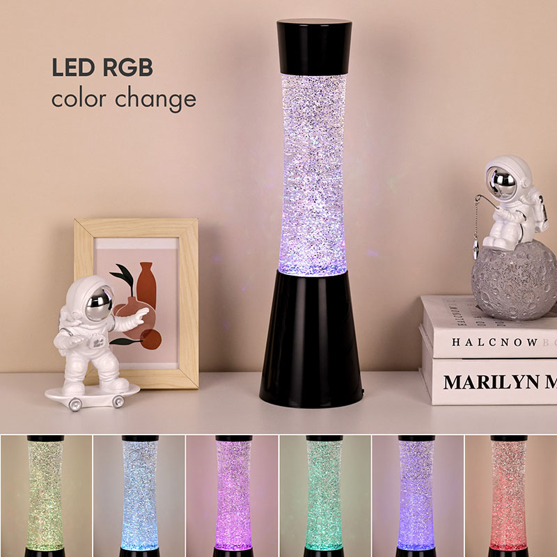 Ένα άλλο χαρακτηριστικό αυτού του μικρού νυχτερινού φωτός είναι η υγρή και γκλίτερ σχεδίασή του στο εσωτερικό. Το υγρό περιέχει μεγάλη ποσότητα λάμψης, η οποία λάμπει έντονα κάτω από τον φωτισμό του φωτός, σαν να λάμπουν αμέτρητα αστέρια στον νυχτερινό ουρανό. Καθώς το υγρό ρέει, η λάμψη θα διασκορπίζεται ακανόνιστα, δημιουργώντας ένα ονειρικό οπτικό αποτέλεσμα. Η λάμπα Led glitter lava με μπαταρία 3AAA διαθέτει επίσης λειτουργία έγχρωμου φωτισμού RGB. Μέσω της προηγμένης τεχνολογίας LED, τα φωτιστικά μπορούν να εκπέμπουν απαλό και ομοιόμορφο φως και να προσαρμόζουν ελεύθερα το χρώμα του φωτός ανάλογα με τις διαφορετικές σκηνές και τις ανάγκες. Μπορείτε να επιλέξετε το αγαπημένο σας χρώμα ή να βάλετε τα φωτιστικά να αλλάζουν αυτόματα χρώματα για να δημιουργήσετε μια πολύχρωμη οπτική πανδαισία.