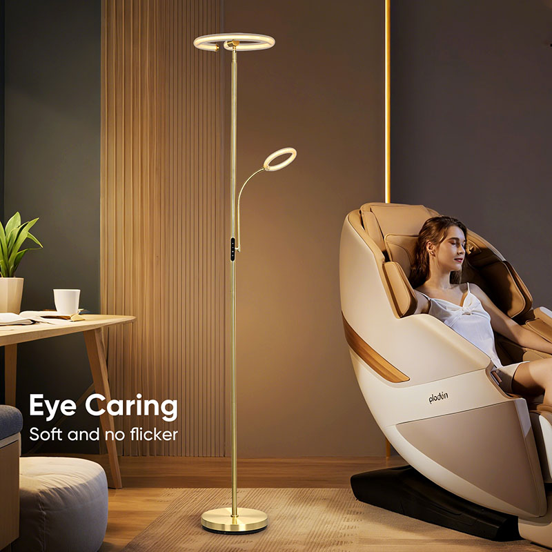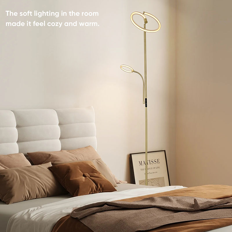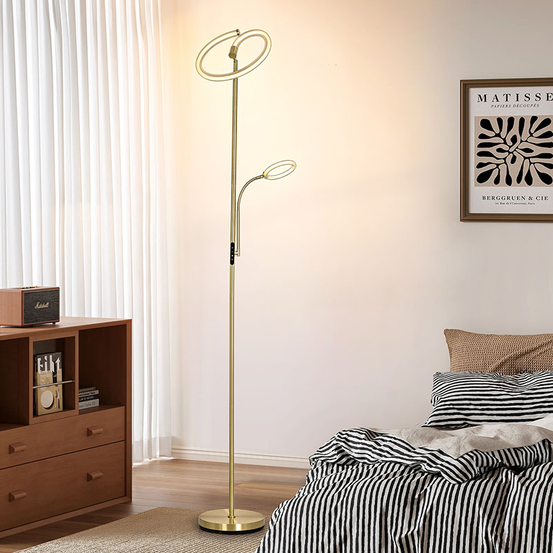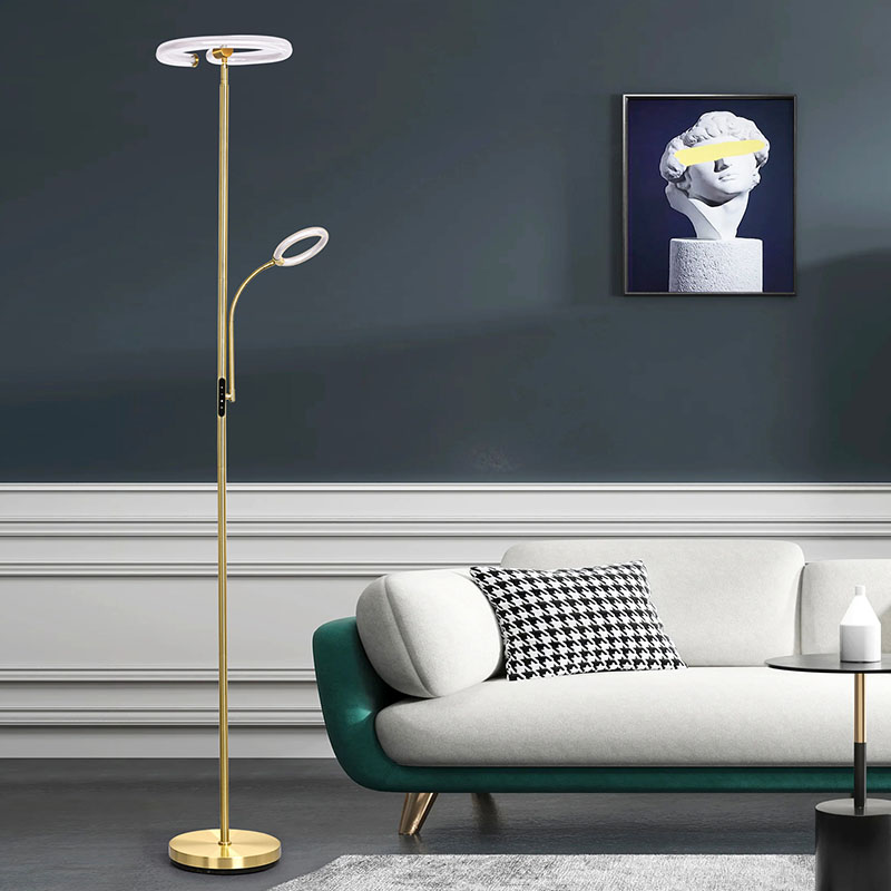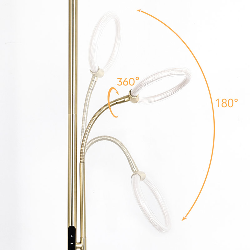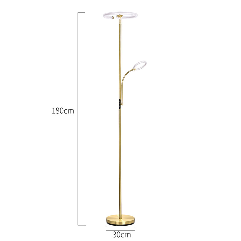 Το φωτιστικό δαπέδου Luxury Gold led για σαλόνι είναι κατασκευασμένο από υψηλής ποιότητας χρυσό μεταλλικό υλικό, με απλό αλλά πολυτελές συνολικό σχέδιο. Το μεταλλικό υλικό έχει γυαλιστεί και έχει υποστεί επεξεργασία, με λεία και λεπτή επιφάνεια και απαλή λάμψη, αναδεικνύοντας μια ευγενή και κομψή ατμόσφαιρα. Είτε τοποθετείται στο σαλόνι, στο υπνοδωμάτιο ή