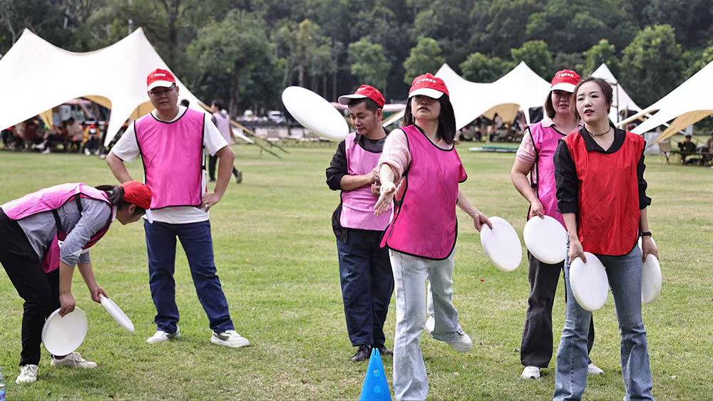 Έργα πέντε: Frisbee Nine Palace Grid 🥏 Κανόνας: Πετάξτε το φρίσμπι από 3 μέτρα μακριά, καταρρίψτε το Nine Grid Plate και σημειώστε 3 ευκαιρίες ανά άτομο. Συγκεντρώστε υψηλό σκορ για να κερδίσετε. Χρόνος: 20 λεπτά. Highlight: Διαγωνισμός ακριβείας εναντίον τύχης!