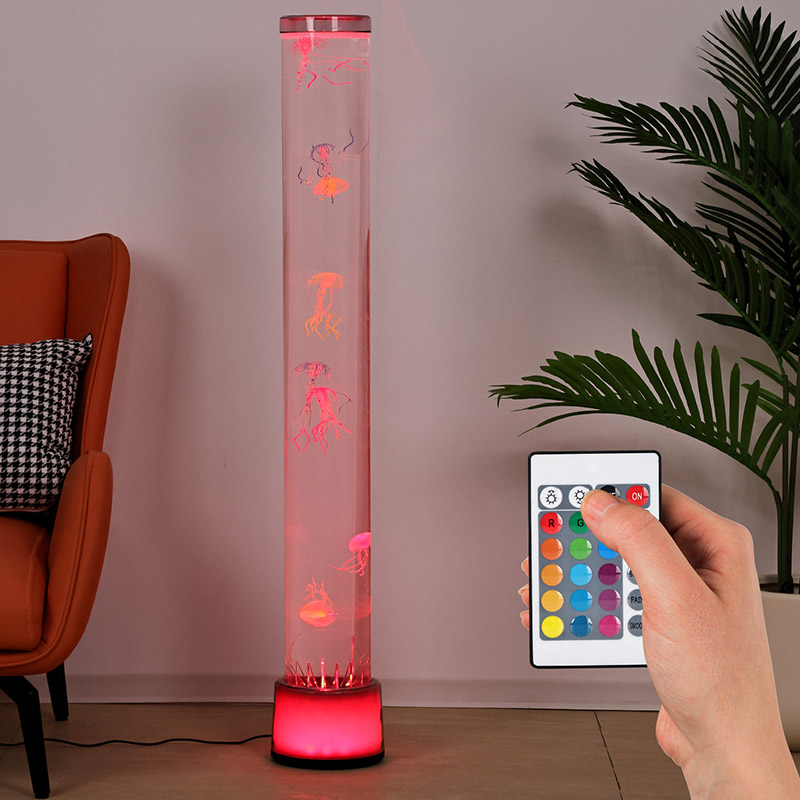 39,5*39,5*113 εκΤο RGB Floor Jellyfish Lamp είναι ένα δημιουργικό κομμάτι διακόσμησης σπιτιού που συνδυάζει τη σύγχρονη τεχνολογία με τη φυσική αισθητική. Με τα ονειρικά εφέ φωτός και σκιάς και το ρεαλιστικό σχέδιο μέδουσες, προσθέτει μια μυστηριώδη και ήρεμη ωκεάνια ατμόσφαιρα στους εσωτερικούς χώρους. Ολόκληρο το σχέδιο είναι κατασκευασμένο από ακρυλικό υψηλής διαφάνειας, με λεπτό και κομψό σχήμα που μοιάζει με μικροσκοπικό υποβρύχιο κόσμο, βυθίζοντάς σας σαν να βρίσκεστε βαθιά κάτω από τη θάλασσα.