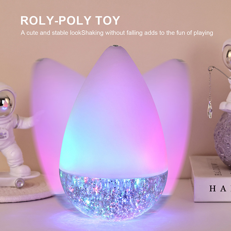 Το χαρακτηριστικό είναι ότι ανεξάρτητα από το πώς κουνιέται, το RGB glitter πολύχρωμο νυχτερινό φως παιχνιδιών Roly-poly θα σηκωθεί