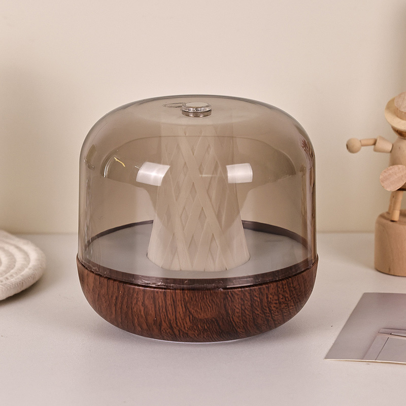 3. Υλικά & Χειροτεχνία: Διαφανές πλαστικό κάλυμμα + Βάση με εφέ ξύλου για εκλεπτυσμένη υφή