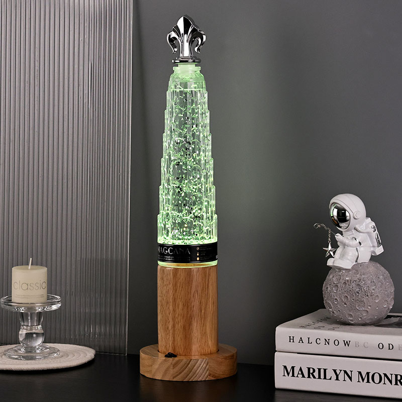 Το επιτραπέζιο φωτιστικό glitter σε σκιά Tower υιοθετεί ένα κλασικό σχέδιο σε σχήμα πύργου, με εξαιρετικές μεταλλικές διακοσμήσεις ενσωματωμένες στην κορυφή, απλό αλλά ευγενές. Το διαφανές γυάλινο μπουκάλι περιέχει υγρό και