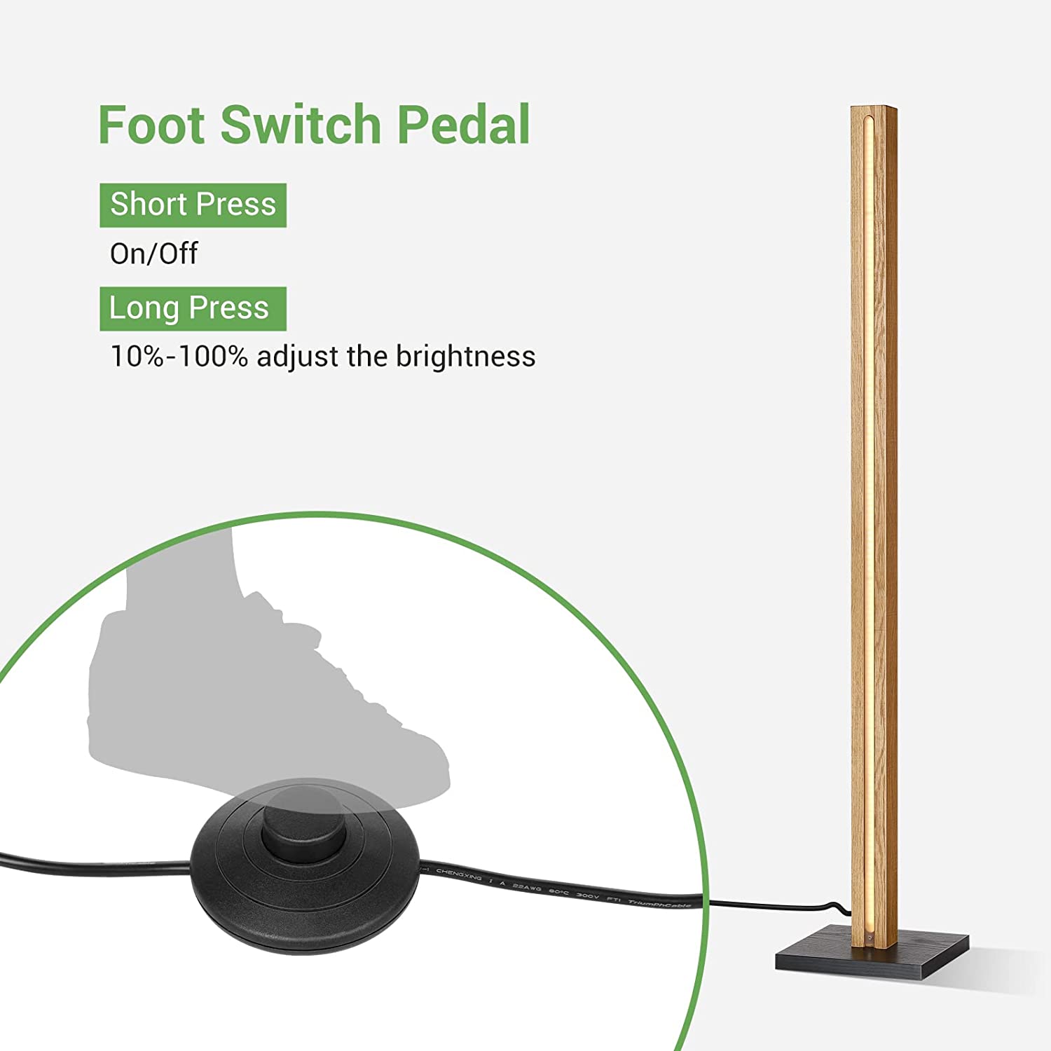 Σε έναν κόσμο όπου ο φωτισμός παίζει καθοριστικό ρόλο στη δημιουργία της διάθεσης και στη βελτίωση της ατμόσφαιρας ενός χώρου, το ξύλινο φωτιστικό δαπέδου LED μας ξεχωρίζει ως κορυφαία επιλογή. Με την έξοδο ζεστού φωτός, τις ρυθμιζόμενες ρυθμίσεις φωτεινότητας και τον βολικό ποδοδιακόπτη, αυτή η λάμπα προσφέρει τον τέλειο συνδυασμό στυλ και λειτουργικότητας. Αναβαθμίστε τη διακόσμηση του σπιτιού σας και απολαύστε τα οφέλη του ανώτερου φωτισμού με το φωτιστικό δαπέδου LED μας.