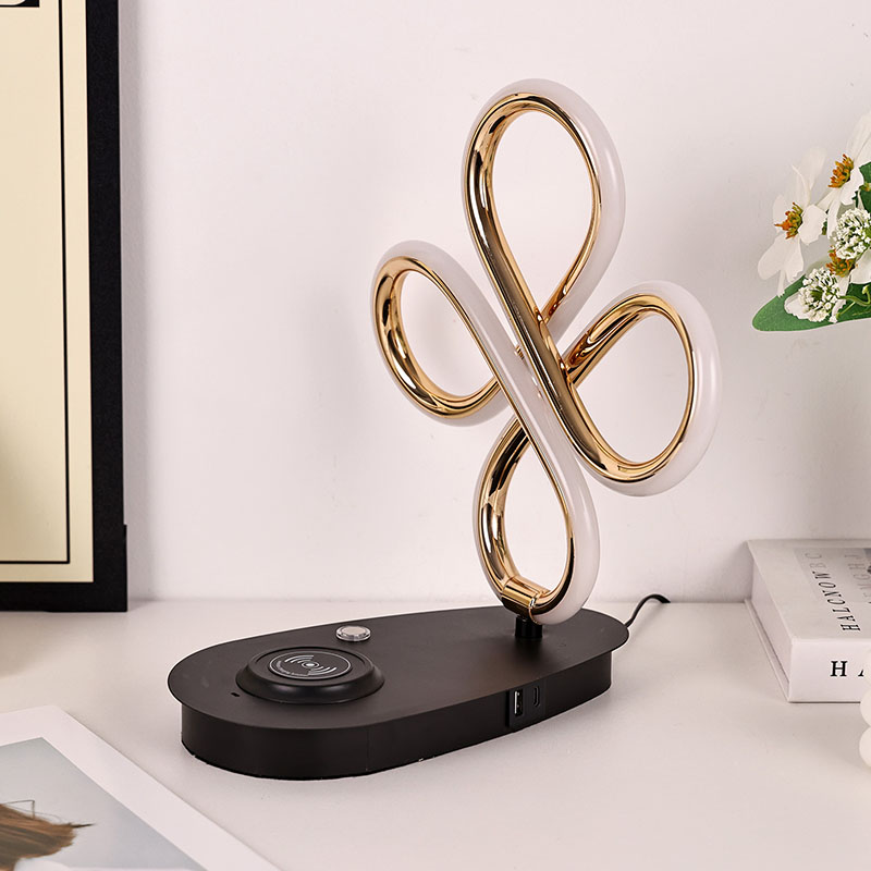 Ασύρματο φορτιστή LED επιτραπέζιο φωτιστικό με σκιά Flowers αποτελείται από μια μεταλλική κύρια κατασκευή.