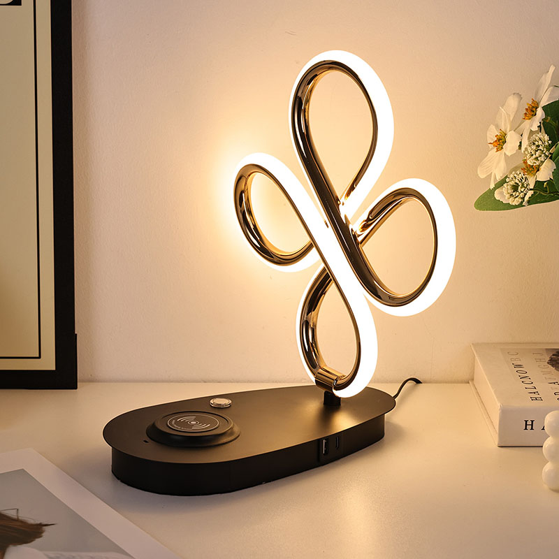 Ασύρματος φορτιστής LED Επιτραπέζια λάμπα με Flowers Shade διαθέτει ασύρματο φορτιστή τηλεφώνου και φορτιστή θύρας usb
