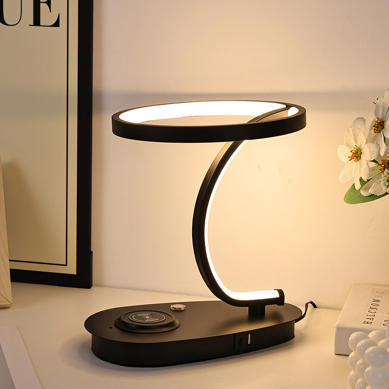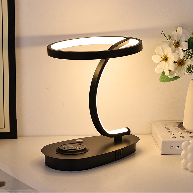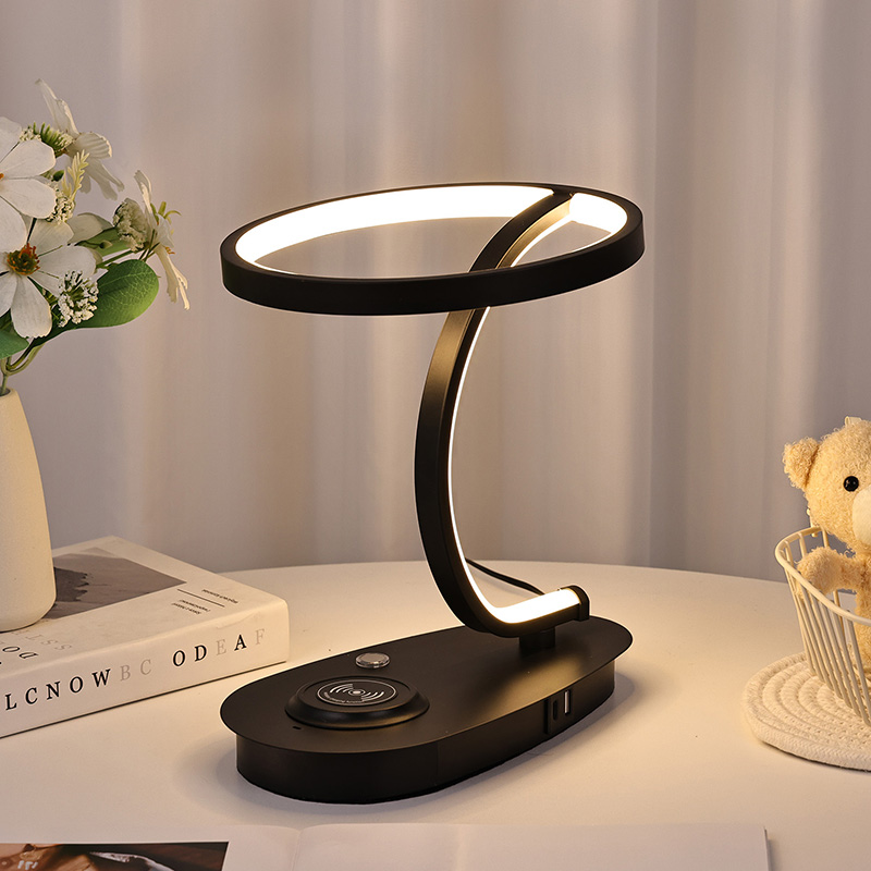 Ασύρματο φορτιστή LED Επιτραπέζιο φωτιστικό με Ring Shade διαθέτει ασύρματο φορτιστή τηλεφώνου και φορτιστή θύρας usb